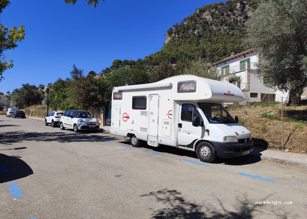 stationnement vers le fond de l'impasse sans aller là où c'est interdit. Très calme et presque plat. 5 min du centre ville. Possibilité d'aller à Deia ou Soller en bus (à l'entrée de la rue) 5€ pour 3 adultes. Toilettes publiques dans le centre.