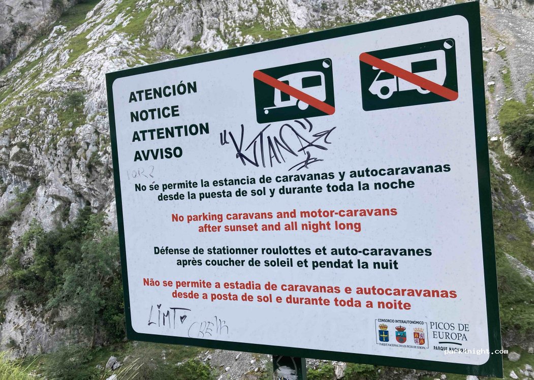 Sólo para aparcar en la misma salida de la ruta del río Cares y la de Bulmes, no para pernoctar.