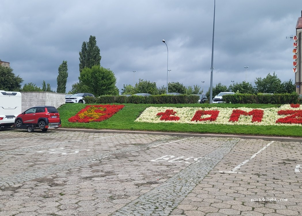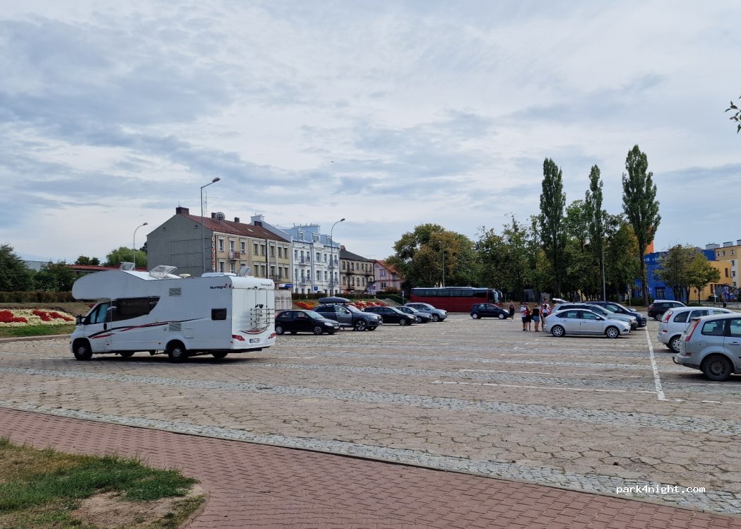 Good location near a small park and paid WC. A bit busy during the afternoon but should be quiet enough at night. We spent the night at the next place close to the edge of town.