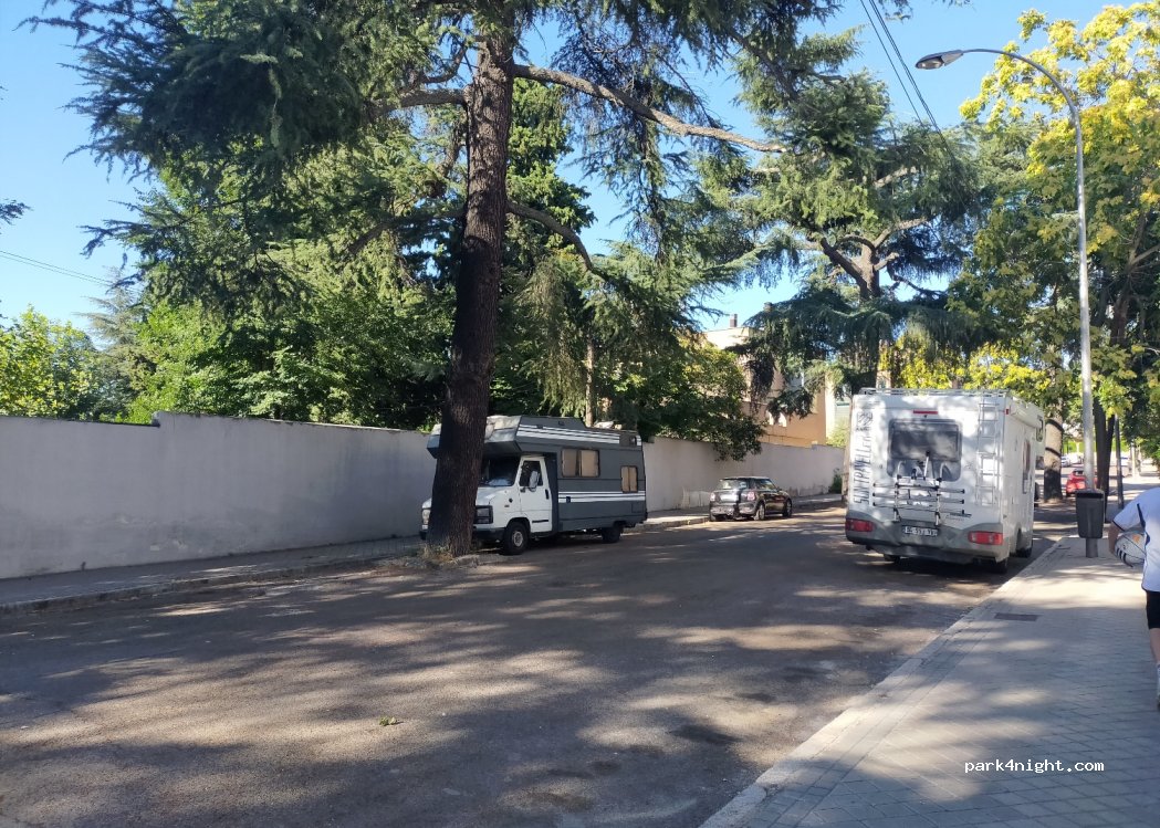 cet endroit a sauvé nôtre journée visite à madrid. nous avons stationné Ici sans peine, à l'ombre toute la journée gratuitement. un autre camping cariste nous avait rejoint plus tard. nous avons d'ici pu aller au stade Barnabeu sans problème c'était le but de la journée.