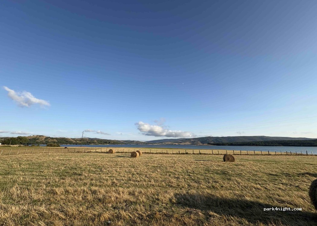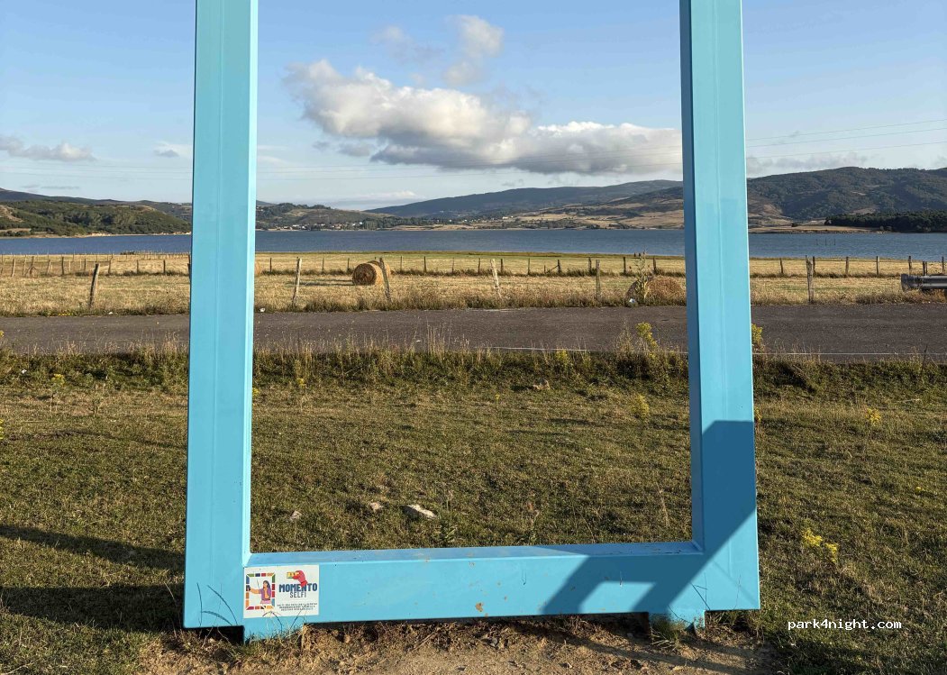 Denkmal des Flugplatzes Orzales und Aussichtspunkt der Lagunen. Es hat zwei Tische. Es liegt am Fuße der Straße