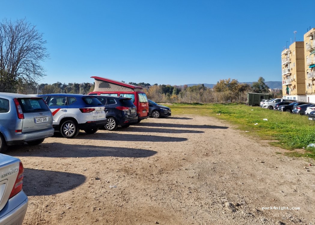 Sitio muy bueno para aparcar y visitar el centro de Córdoba (a 20 min a pie). Se puede pernoctar sin problemas. El sitio es un parking publico, descuidado y sucio. Al día siguiente se pusieron unos gorrillas en el mismo parking. No recomendable para estar allí.