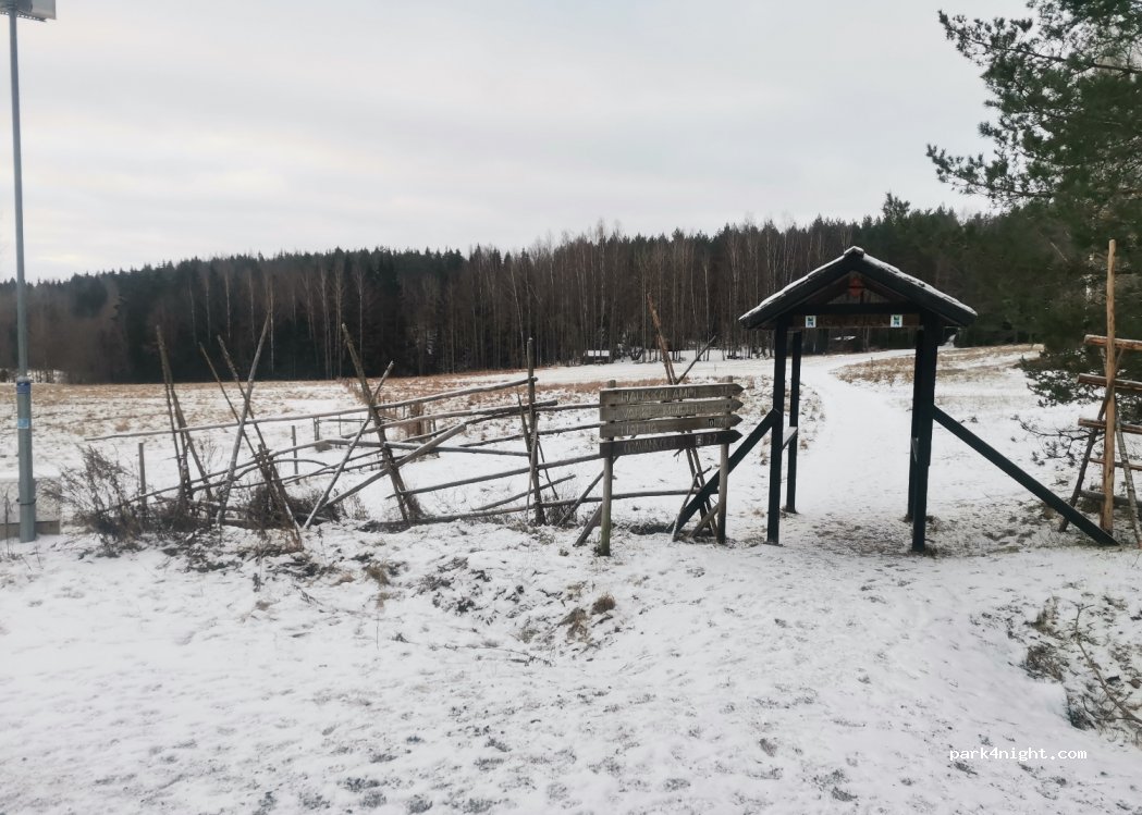 Parking at the start of the hike. Dry toilets and place to make a fire with dry wood available. Nice place to walk and enjoy nature.
