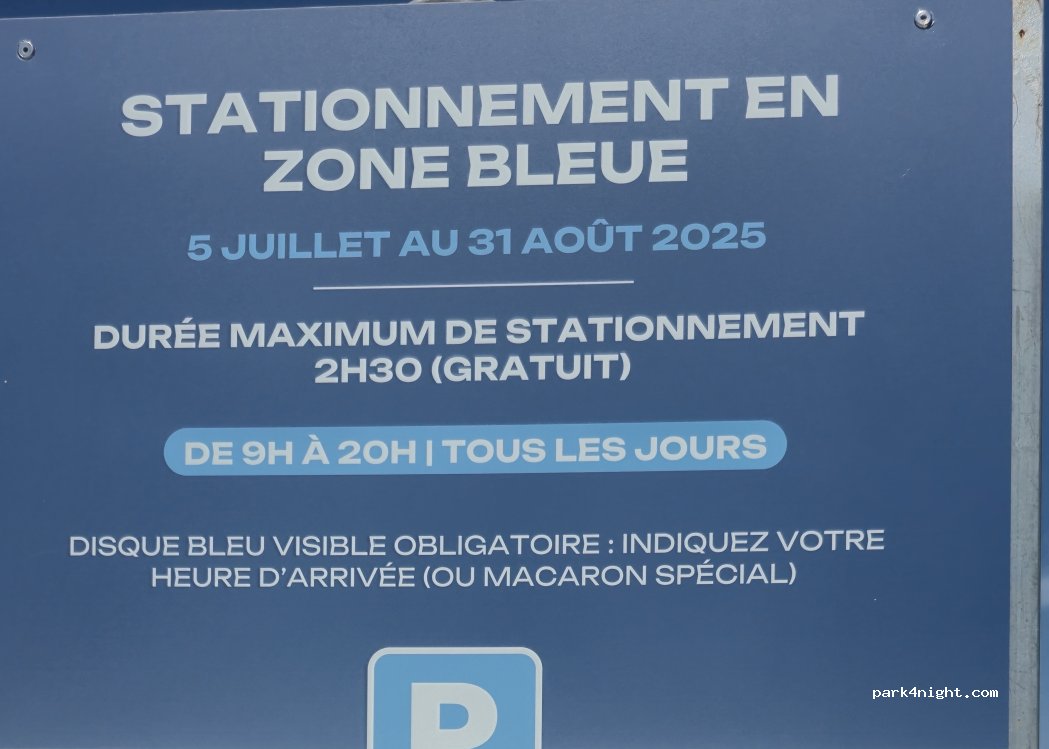 J'ai passé deux très belles nuits ! Parking assez calme malgré un va et viens le matin tôt et tard le soir ! Très proche à pieds pour aller au centre ville et à la plage ! belle petite ville à taille humaine. Le seul bémol, il faut avoir de la chance ou attendre pour avoir une place. Idéal en voiture ou petit van, mais je n'ai pas vu de camping cars, il me paraît difficile d'en garer ici...