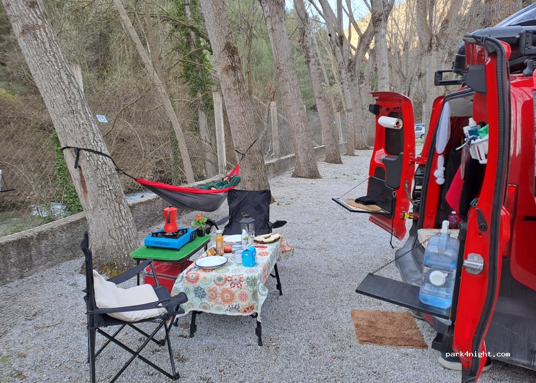 El Cortijillo campsite with restaurant. About 30 places by the river in an ideal setting. Perfect for going to various trails in the Sierra de Castril. There is no coverage, it has sloping ramps to access (we had no problem with a large and old motorhome). The worst, the access road that is a narrow and bumpy forest track, although it has sidings and with patience you can get there.