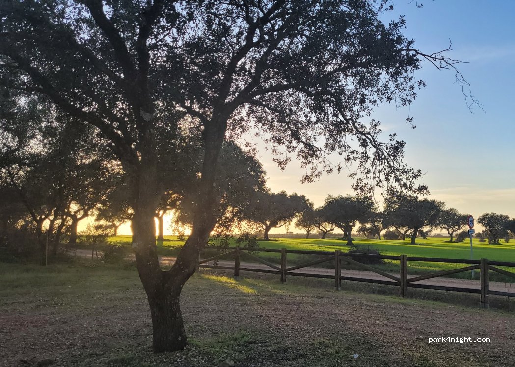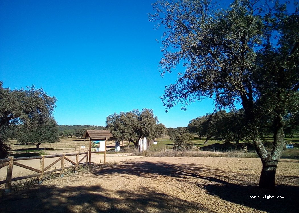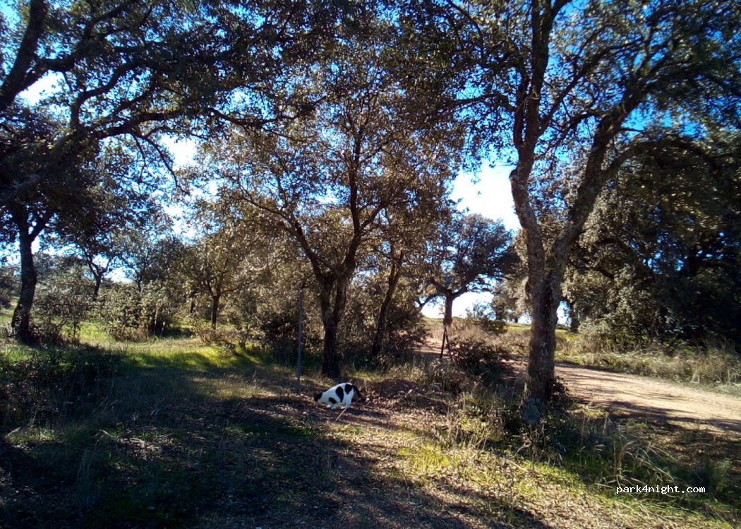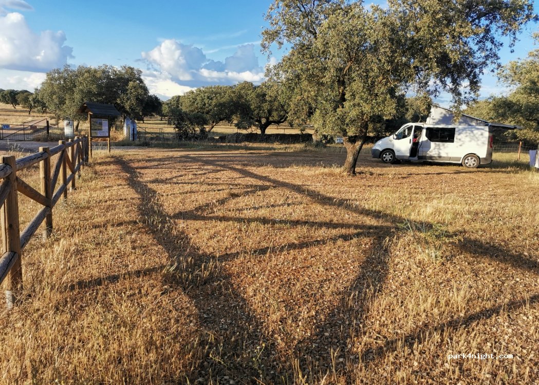 Petit parking non goudronné juste à l'extérieur du parc naturel de Cornalvo. Des belles balades à faire dans le coin. 0 services et calme assuré !