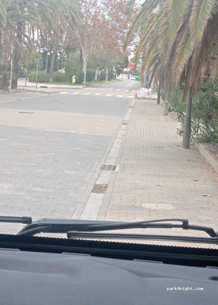 Dispite some comments on here we found it a nice spot to spend the day and night. It is tucked away a bit, but in residential area. Was nice and quiet. Convenient busstop (9 min walking) to hop on the number 4 bus to city centre. When coming back, the bus stops at your doorstep, it is a different busstop. Even our big 7.5t motorhome found a space under the (fairly low) palmtrees.