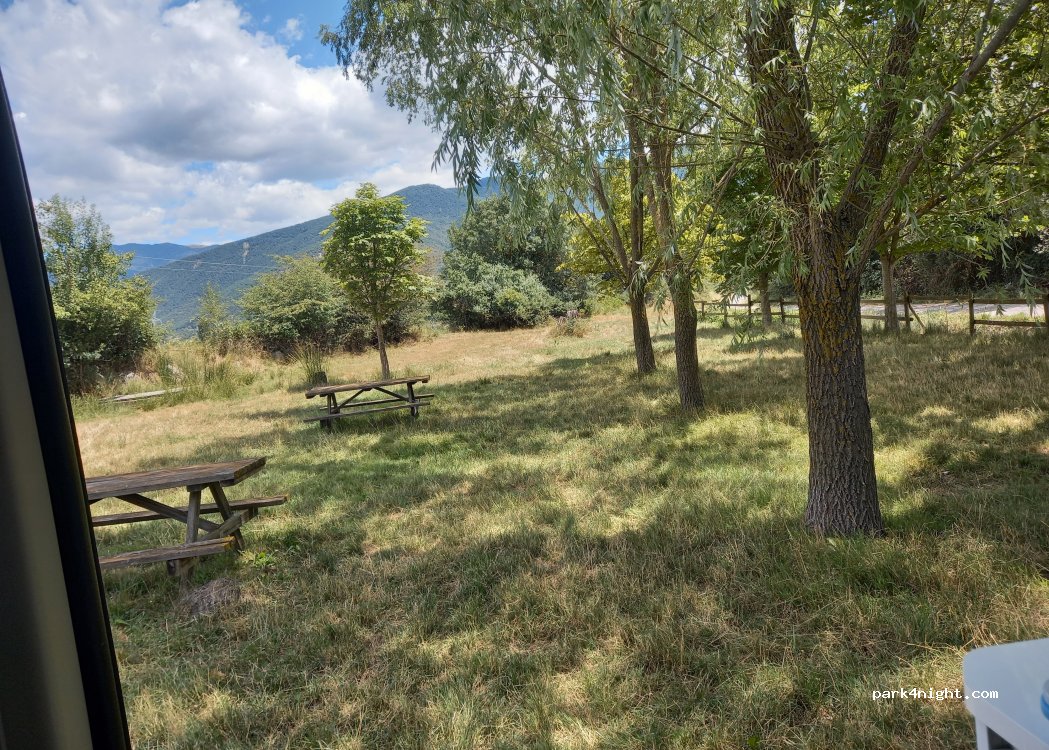 Un sitio muy tranquilo con sombra, mesas y agua. Pasa por al lado un camino poco transitado. Está en medio de la naturaleza y el acceso no es muy directo desde el pueblo, hay una cuesta bastante pronunciada aunque creo que sin problema para furgos pequeñas y medianas.