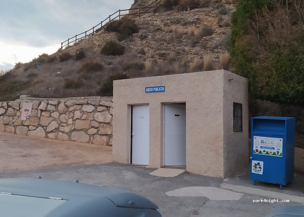 Parcheggio ai piedi del castello di Busot. Ampia area pavimentata con marciapiedi. Illuminazione notturna, container vari, servizi igienici pubblici, parco giochi nelle vicinanze... Posto molto tranquillo vicino al centro storico oltre a ristoranti e altri servizi. Posto perfetto per mountain bike/escursionismo. Visita alle grotte di Canelobre e Cabeçó d'Or.