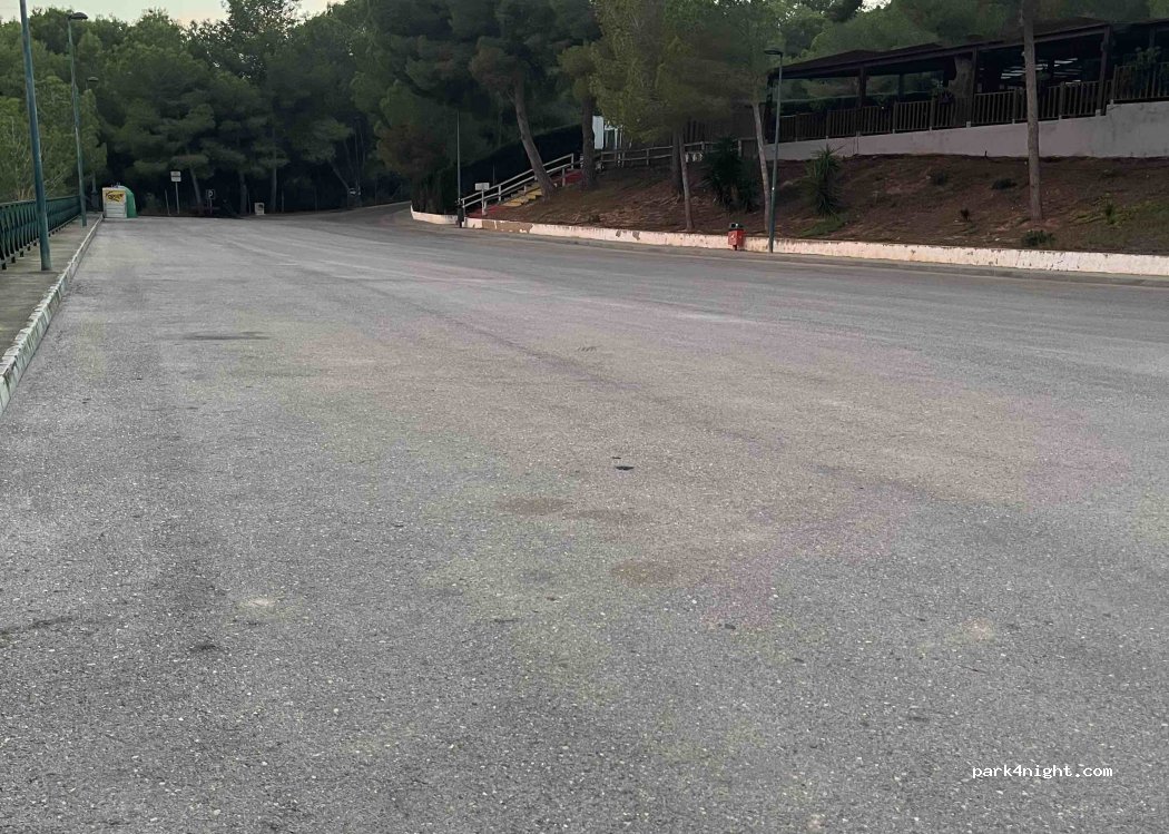 Parking near sport facilities and restaurant at the edge of the town of Pinar de Campo Verde. Garbage and recycling bins are on the parking. Nice walks along the river with small canyons. Quiet.
