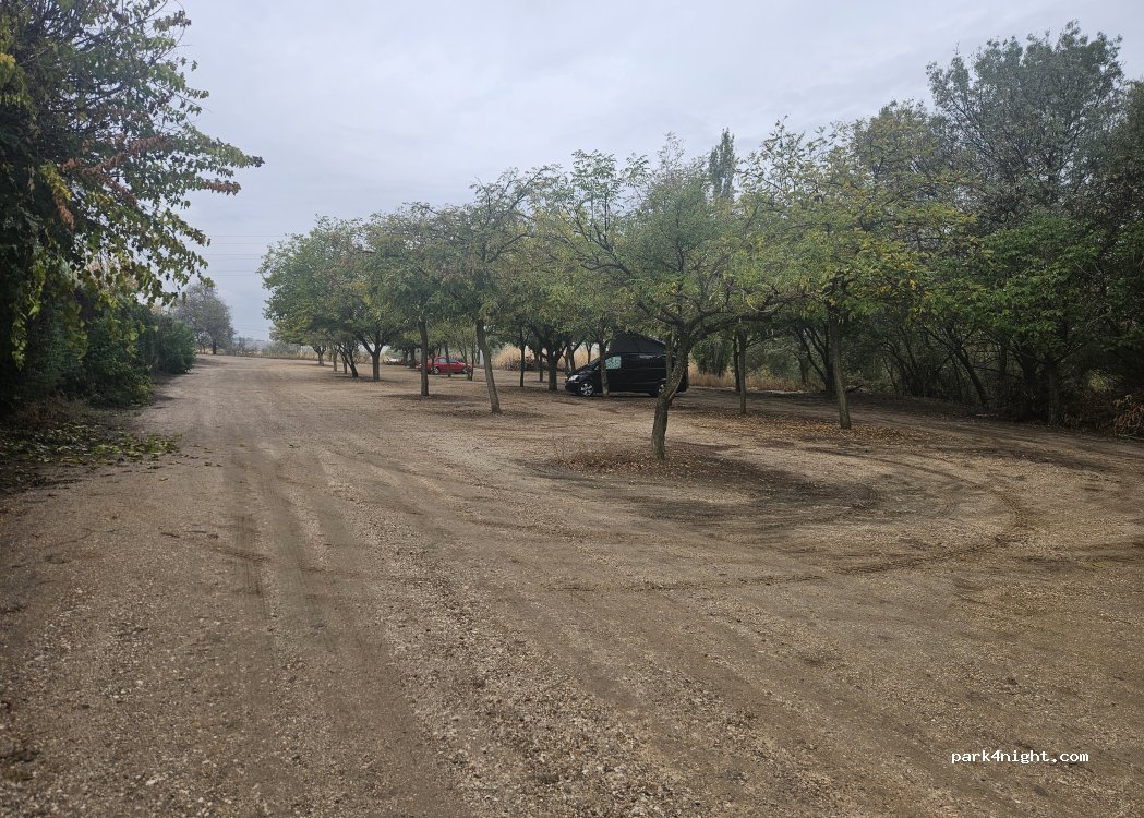 Trankilo sitio para pernoctar, cerca de la carretera sin que moleste y gasolinera próxima...hay que entrar y atravesar el parking de un polideportivo y al final te encuentras el aparcamiento en cuestión...cerca hay un "lago" donde se pueden ver patos y aves. Por favor...dejadlo todo igual que lo encontráis al llegar para que otros se puedan beneficiar del mismo sitio que vosotros.