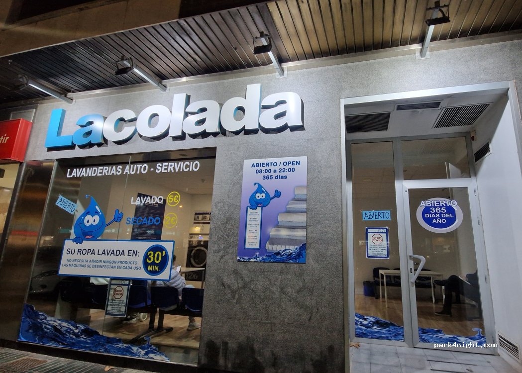 Good laundrette. Auto detergent, €5 wash was plenty big enough. I took the long dryer setting of 36 mins at €4 and clothes were very dry, excellent. Good free WiFi! This laundrette is about an 8 minute walk from the FC cartegena car park and I would say walk, as the parking is small outside and also very full. You would be unlikely to get a parking space.