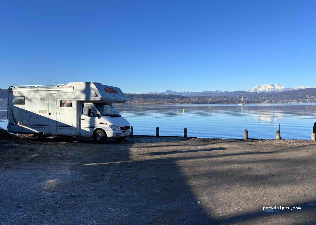 Beautiful spot right on Lake Maggiore, max three to four vans, probably wouldn’t stay over the weekend out of respect for the bar next to it.