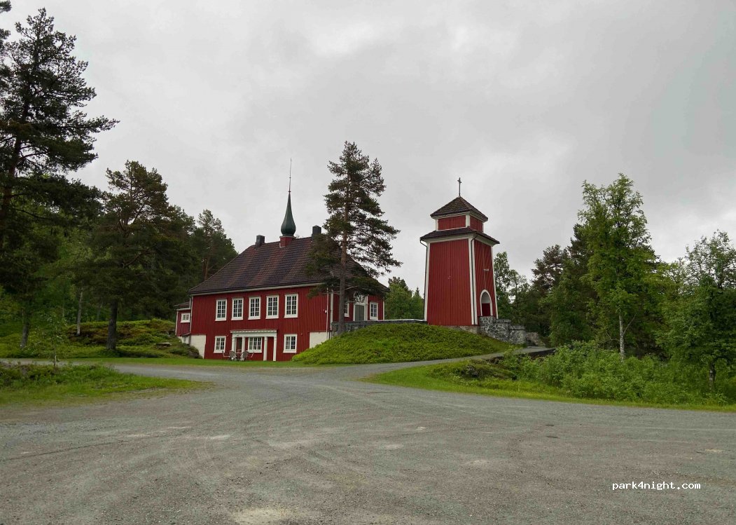 Stellplatz direkt bei der privaten Holzkirche, ruhig, schöne Sicht auf See und Kirche, für eine Übernachtung mit wenigen Wohnmobile gut
