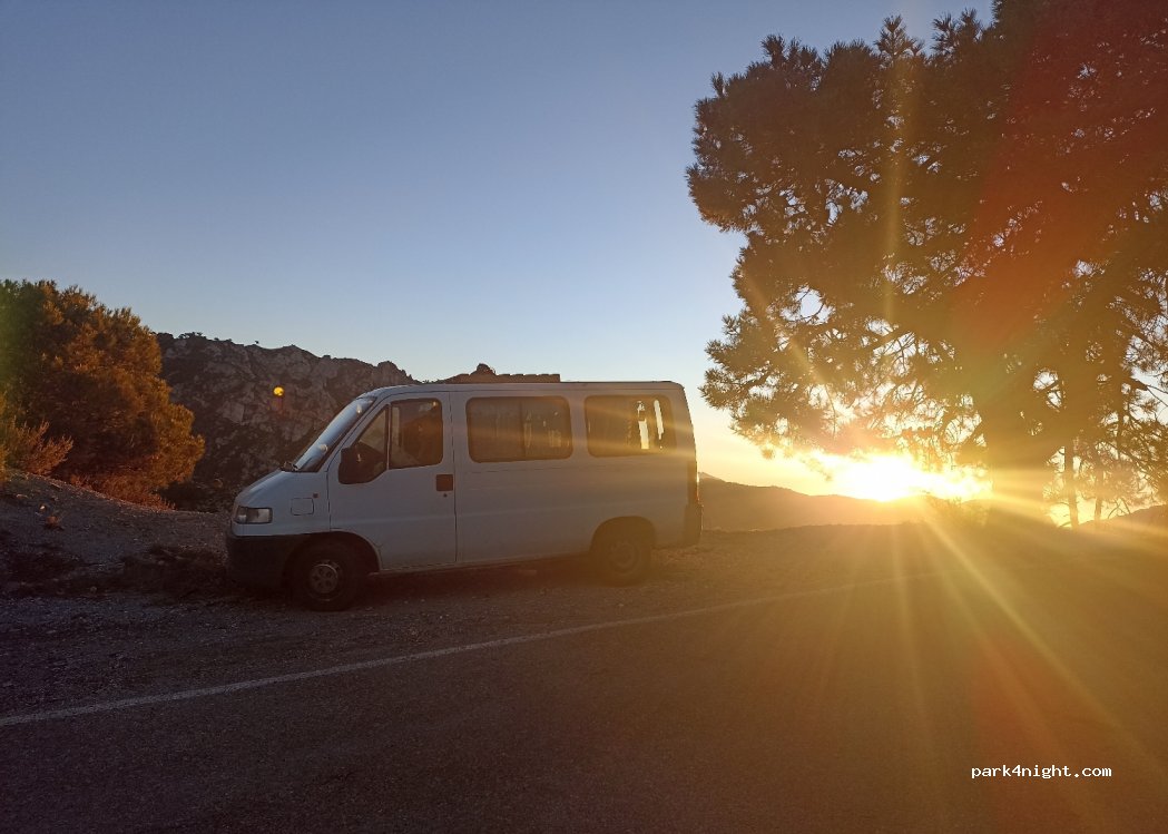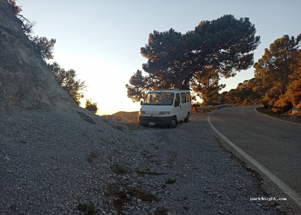 Parcela con espacio para dos autocaravanas, junto a la carretera. Impresionante vista del valle. Gran lugar para comenzar a caminar. Noche silenciosa y estrellada. Es uno de los pocos lugares donde 4G está llegando.
