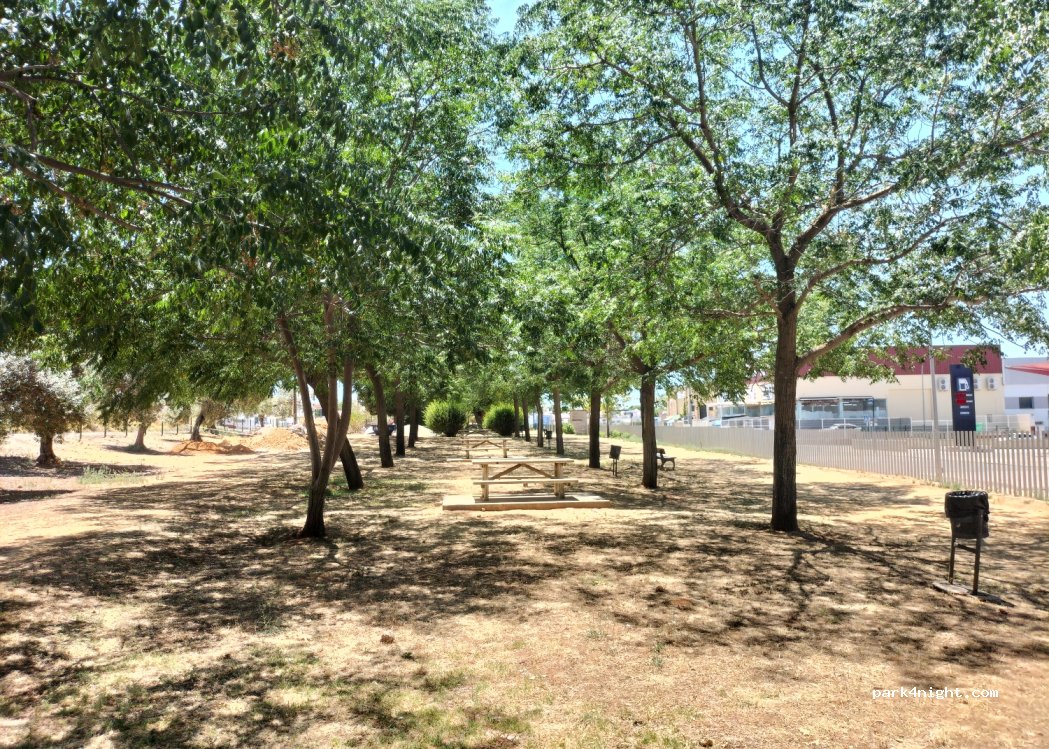 Hay algunas mesitas de picnic con sombra. Lamentablemente no hay ningún aparcamiento con sombra, y no da para aparcar cerca de las mesas. Queda al costado de las naves del polígono industrial.