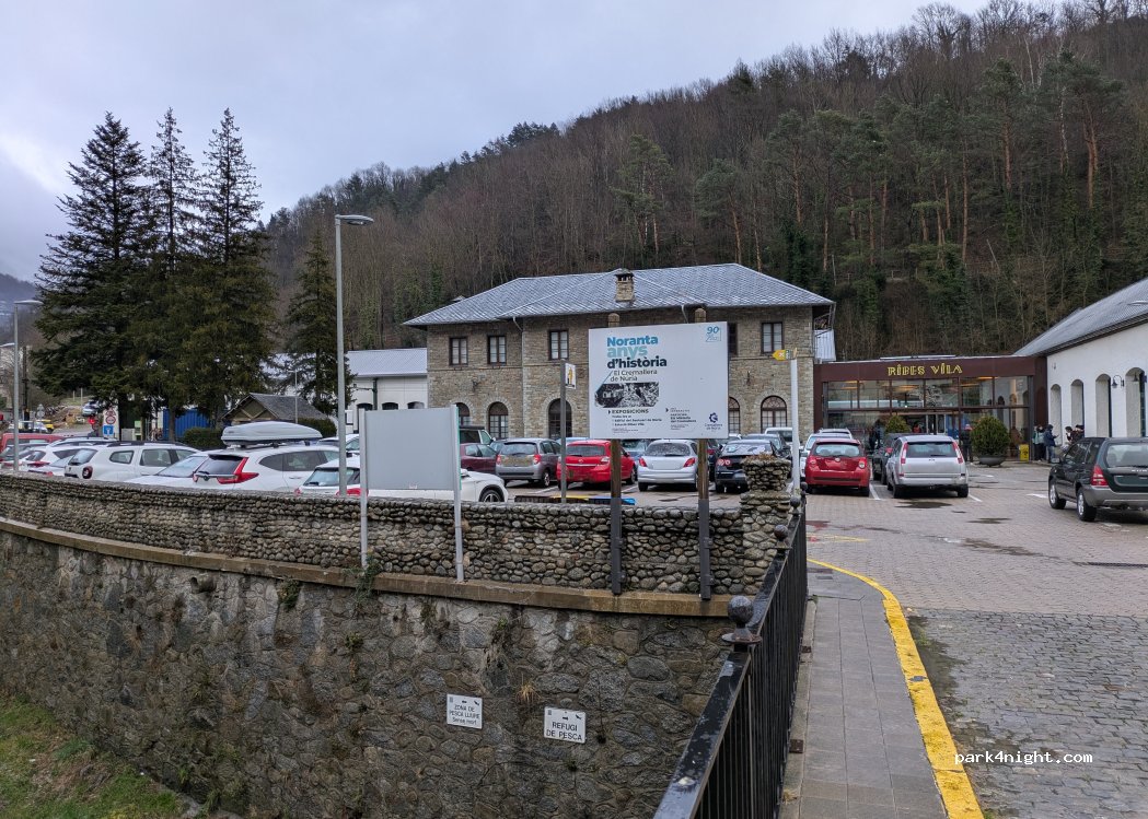 Parking gratuito al aire libre y en zona resguardada justo en el acceso al tren cremallera. De noche tranquilo y silencioso, de día más ajetreo por el tren. Preguntamos en varios sitios y nos confirmaron que está permitido estacionamiento y pernocta de AC (obviamente, sin acampar). Hay una panadería con bollos deliciosos justo al lado. Perfecto sitio para visitar el pueblo.