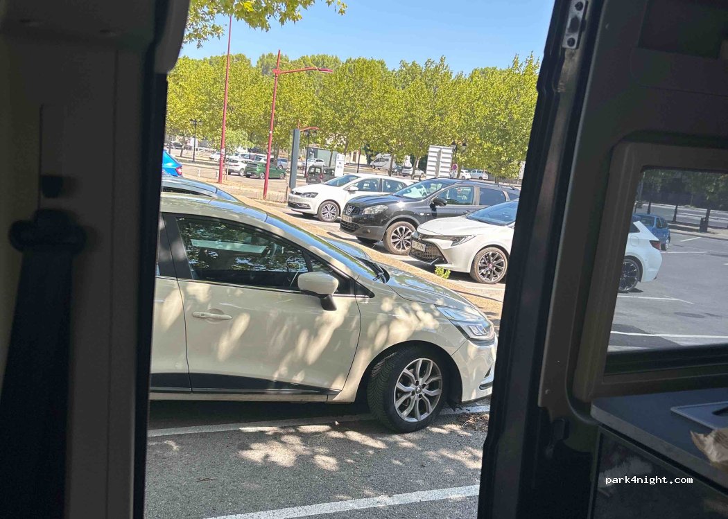 Ce parking est adapté pour la journée, mais pas pour une nuit. Nous y avons passé une très mauvaise nuit, des groupes de personnes se rassemble sur les bancs et dans leur voiture, écoute de la musique forte, se soulagent à côté de notre van jusqu'à 5h du matin...