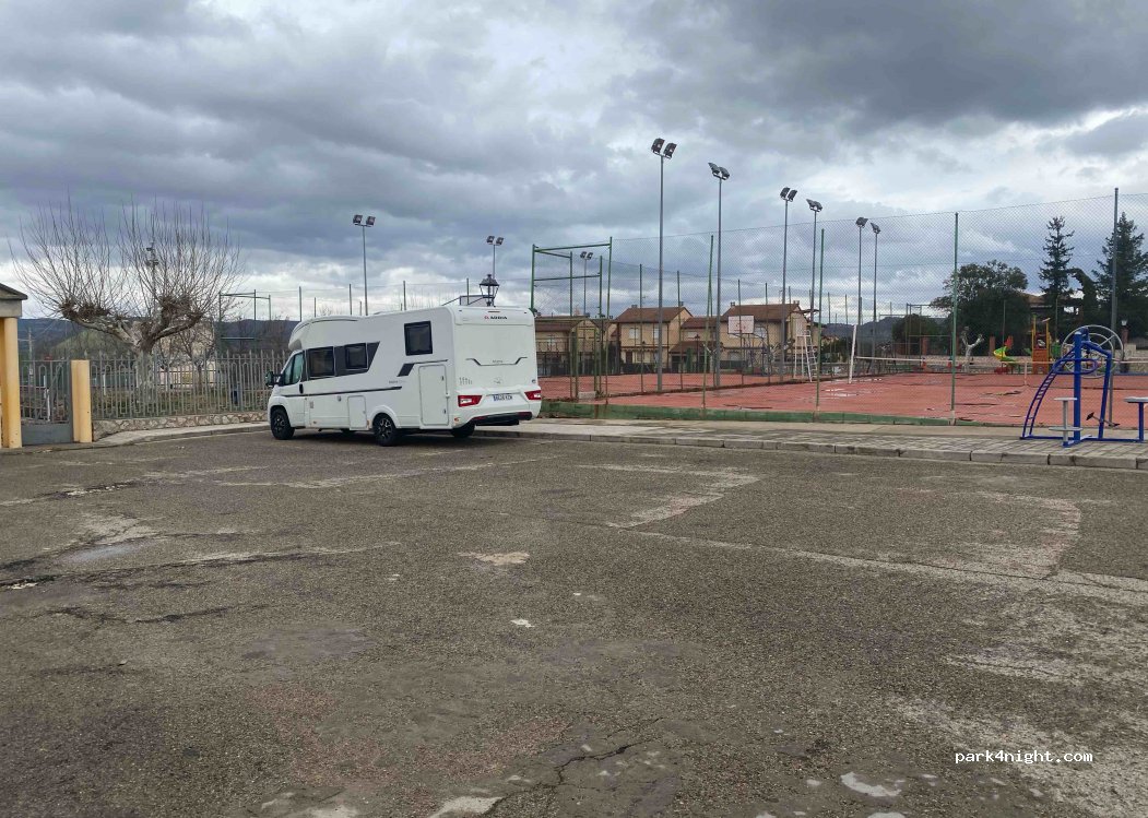 En octubre lugar muy tranquilo, estabamos solos, enverano será más concurrido para pasar el día. Id a última hora. Junto a la piscina municipal, con acceso a las canchas, tiene fuente, zona verde y un parque infantil perfecto! contenedor. Hay que visitar el pueblo, muy acogedor y con una panaderia/minitienda ideal ( los preñaos tremendos). Cerca de Bolarque. Está algo en bajada.