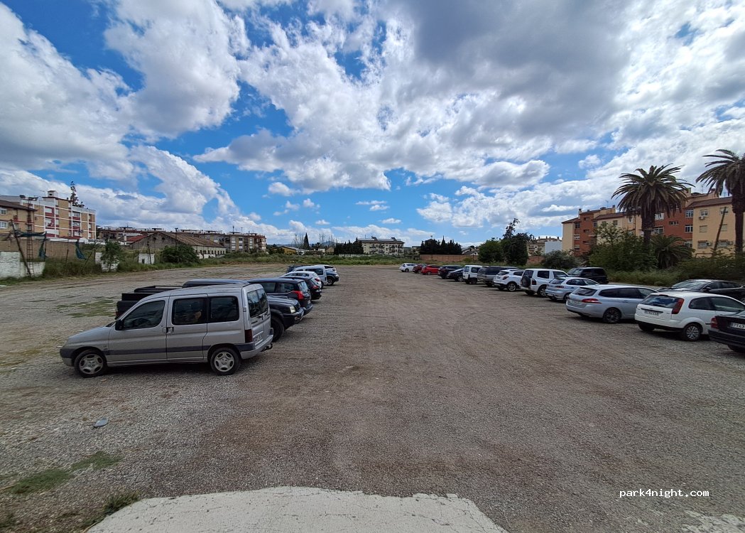 Uno spiazzo dove due furgoni hanno trascorso il fine settimana tranquilli, senza problemi, senza rumore, la polizia locale è passata e non ci hanno detto niente. Forse per veicoli di grandi dimensioni l'ingresso non è buono come dovrebbe essere, ma per Camper è l'ideale. Il parcheggio per camper era pieno e l'abbiamo trovato. C'è un Lidl e un Mercadona nelle vicinanze, un vicino padiglione sportivo con servizi e una lavanderia di fronte al padiglione.