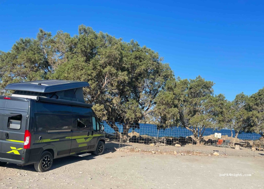 Bonito espacio de estacionamiento y pernoctación en la playa de voulolimni.
