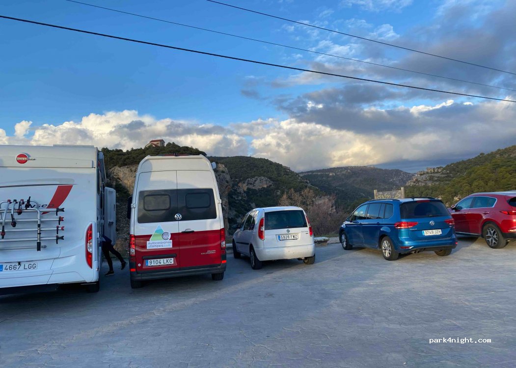Aparcamiento junto a nuestra bodega ecológica. Un precioso lugar con viñedos, almendros y olivos, enclavado en el Parque Natural de las Hoces del Cabriel. Dispone de plazas de aparcamiento para 6 vehículos, con electricidad para cuatro, agua potable e instalaciones sanitarias de primera calidad (aseo y ducha). Importante: El sistema de desagüe de aguas grises y negras está cerrado.