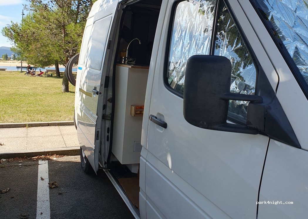 Buen aparcamiento, pero no para pernoctar… A la 1:10h de la mañana dieron golpes en la autocaravana y intentaron abrir la puerta. Al dar golpes desde dentro, se fueron. Al dia siguiente preguntamos a otros chicos que estaban aparcados detras nuestro y les paso lo mismo. Una lugareña confirmo que robaban bastante las autocaravanas por esa zona.