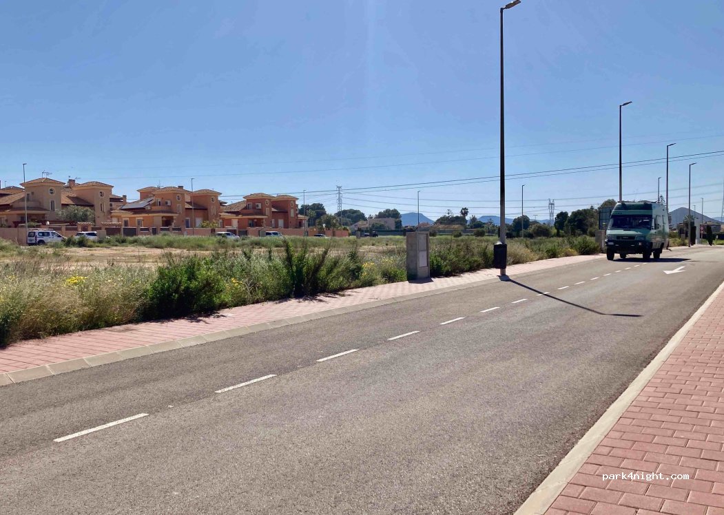Urbanización muy tranquila, con plazas libres de sobra y junto a un parque y varios descampados. Hemos pasado una noche estupenda antes de ir a Cartagena. Recomendable para hacer escala!
