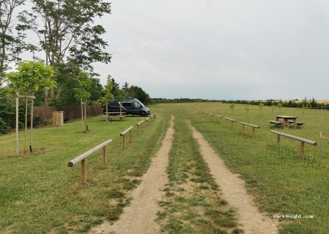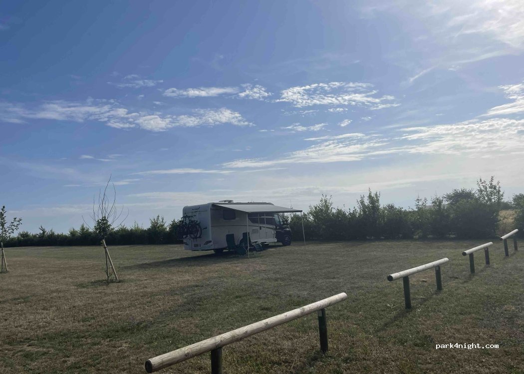 Schöner Platz und toller, sehenswerter Ort für eine Nacht. Man muss über den großen, beleuchteten Parkplatz fahren, dann gelangt man zum Feld auf dem genügend Platz zur Verfügung steht. Picknicktische vorhanden. Wir wurden durch das Krähen eines Hahnes auf dem Bauernhof nebenan geweckt. Achtung, kein WC!
