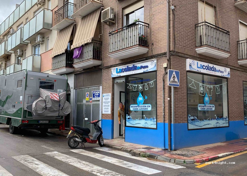 Waschsalon der Kette Lacolada, in Wohngebiet des Vorortes von Granada Armilla, 5 Minuten vom Einkaufszentrum Nevada entfernt! Zwei Maschinen 12kg, eine mit 16 kg zwei Trockner auf der Straße wenige Parkmöglichkeiten, man parkt evtl. Einfahrt zu, kann aber reagieren, wenn einer raus will!