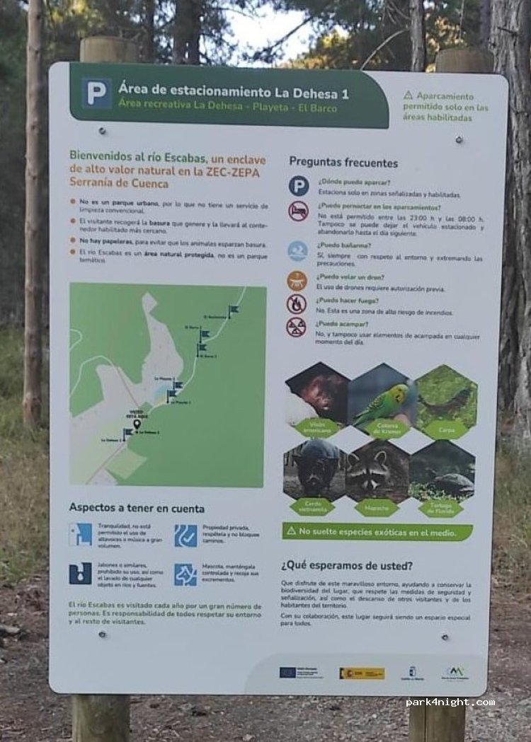 Parking solo de DIA. Prohibida la pernocta y estacionamiento de cualquier vehículo de 23:00 a 08:00 h. Es un parking pequeño, pegado a la piscina natural de cañamares, el lugar aunque pequeño es un buen sitio.