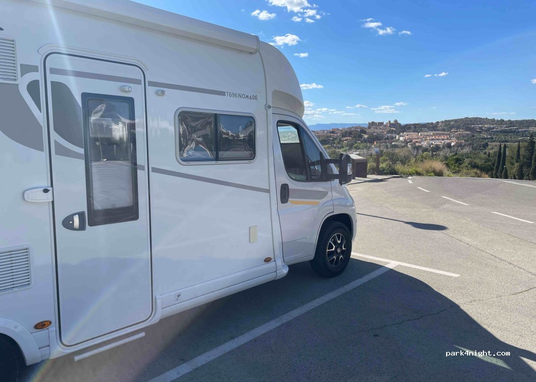 parking sur les hauteurs. Belle vue pour le couché de soleil. Nous y avons mangé et pour le coup passé la nuit avec CC de 6 mètres 70. Calme en cette saison.
