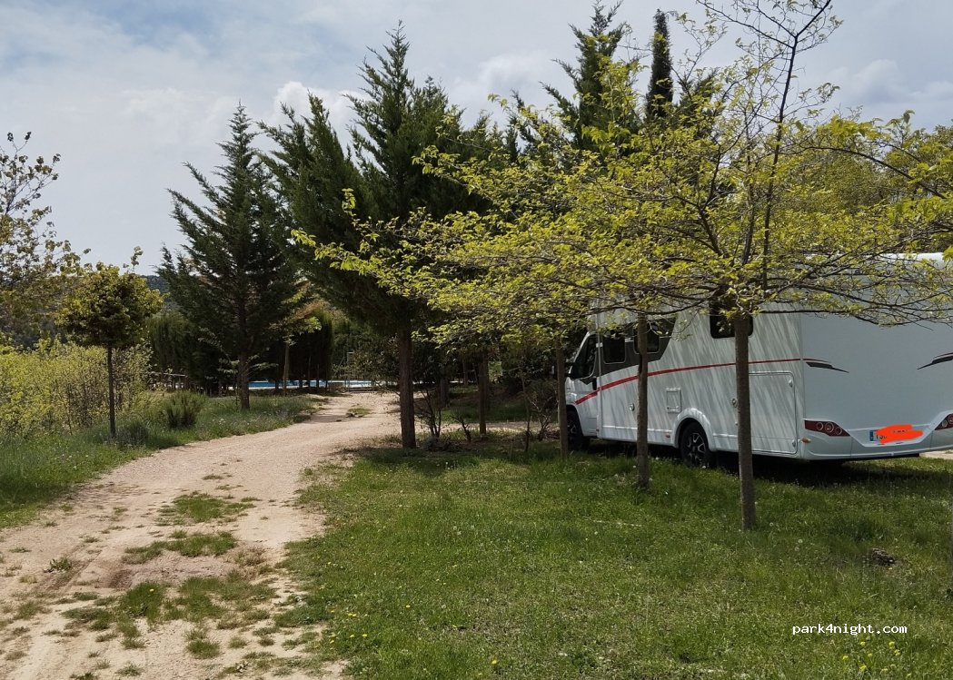Es difícil entrar en el pueblo con una autocaravana. Este aparcamiento es perfecto para eso, y para pasar la noche si se tercia.