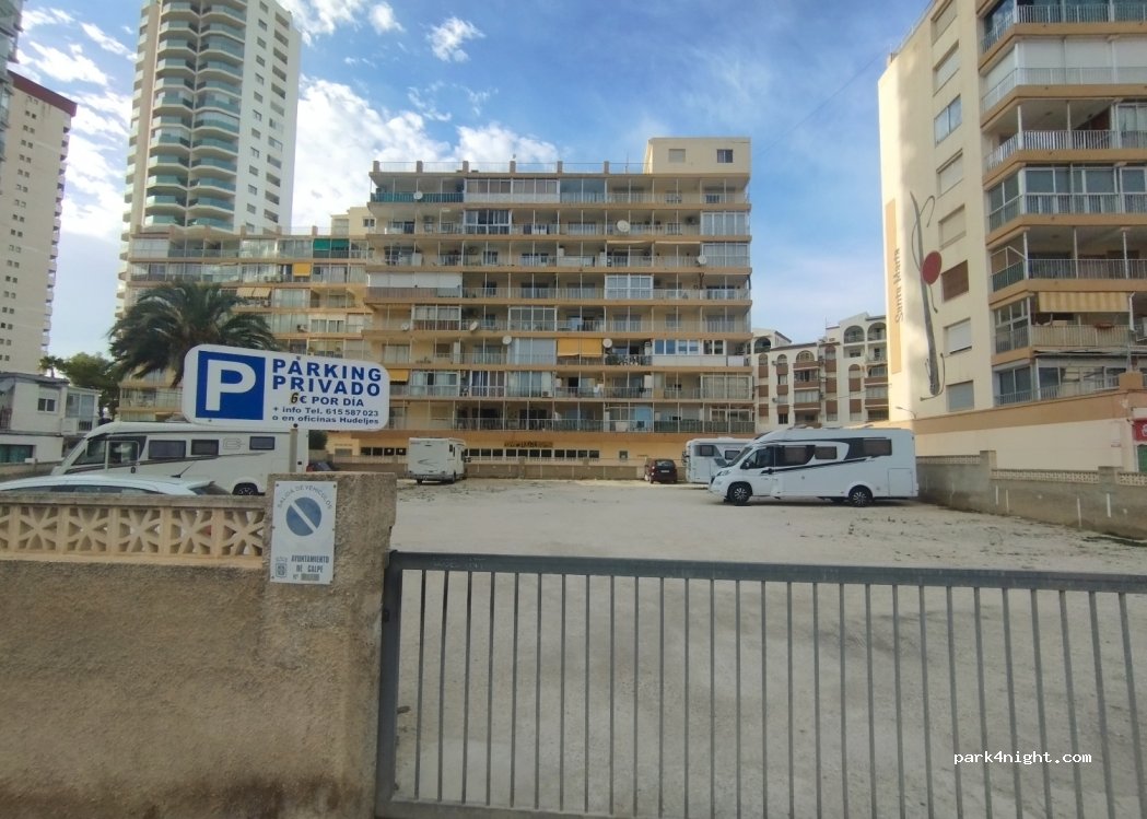 Parking, sans services, très bien placé pour visiter Calpe à pied. Bord de mer et commerces à proximité immédiate ! Calme la nuit. Excellent accueil en Français !
