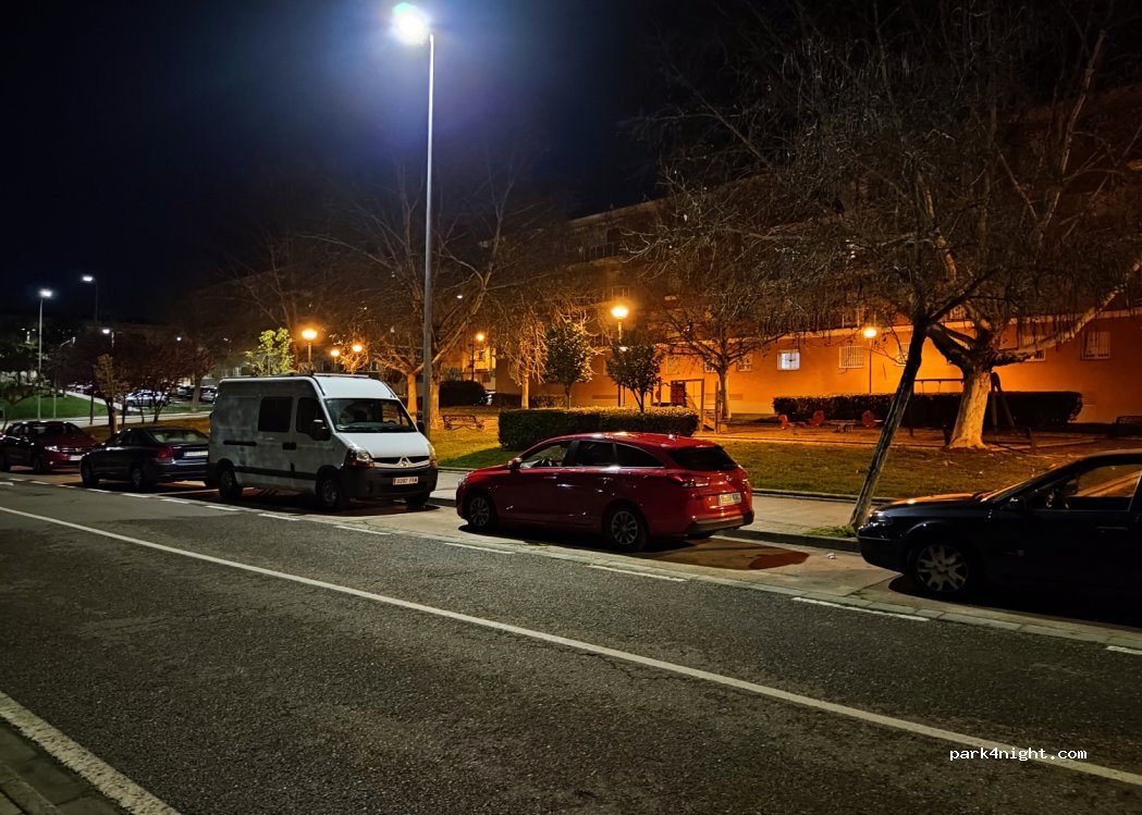 Llegamos por la noche y había bastante espacio libre para aparcar. Calle poco transitada y sin ruido para dormir.
