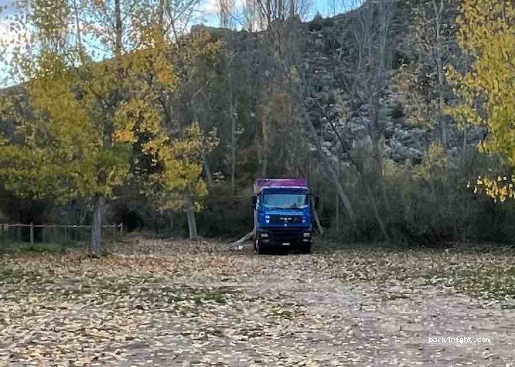 Picnic area with quiet parking. 2 km from El Cuervo. It is the beginning of the route of the narrows of the river Ebron. You can park and spend the night, there is no sign that prohibits it. The entrance is a bit narrow but it is accessible.
