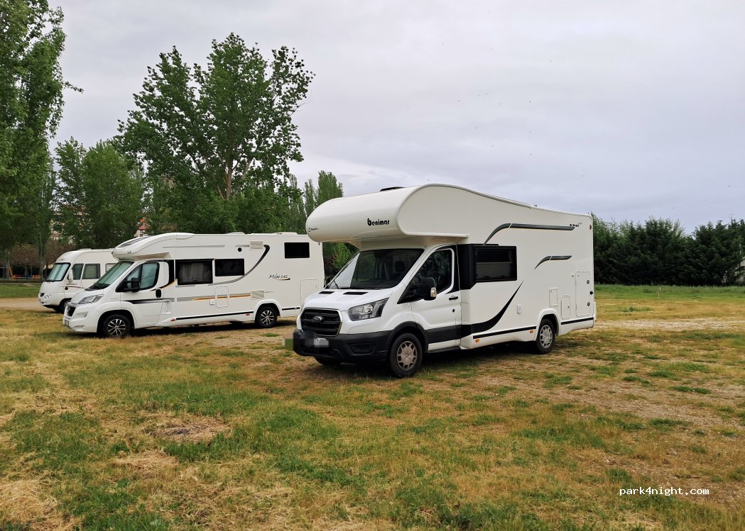 Sitio agradable y tranquilo para pernoctar. Es un lugar recreativo con parque para niños y niñas con tirolina y parque para perros. Pasa mucha gente paseando a primera hora de la mañana por la senda fluvial pero es no es inconveniente.