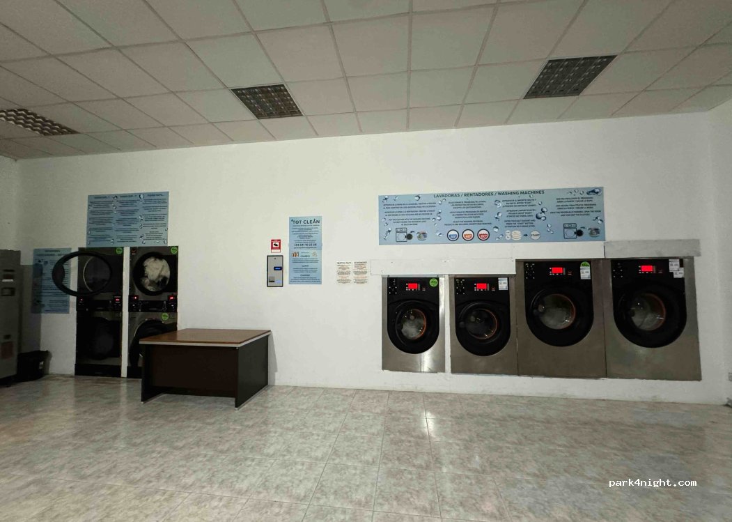 Lavandería autoservicio "Tot Clean", dos lavadoras (14kg y 18kg). No se puede pagar con tarjeta, solo es posible en efectivo (pero los billetes se pueden cambiar por monedas en el sitio. Abierto las 24 horas)