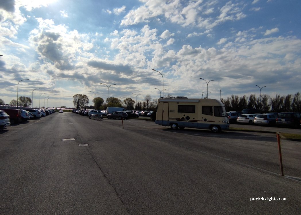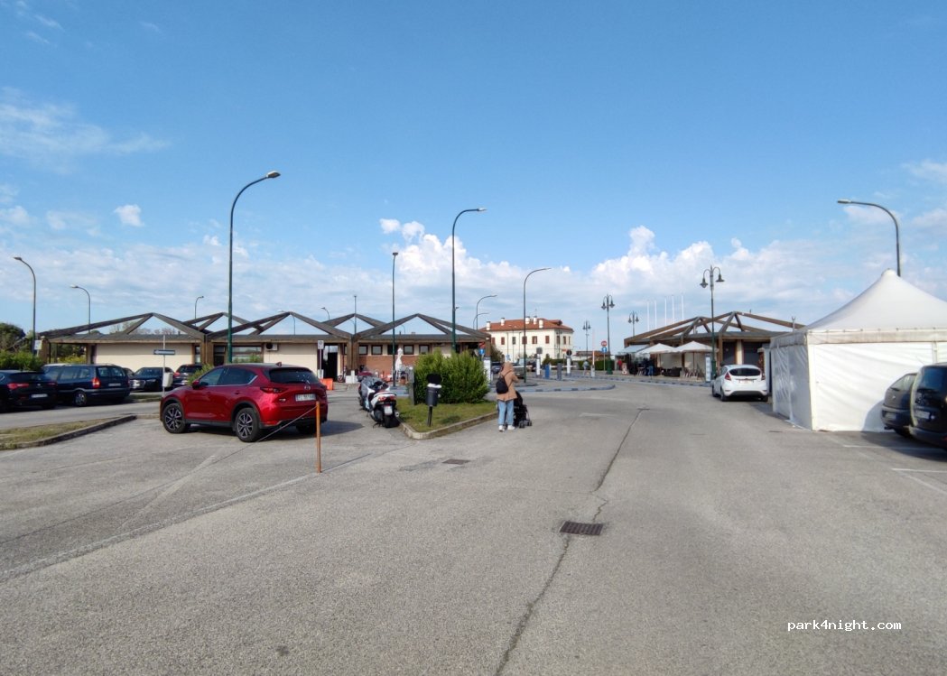 Convenient 24-hour parking for ferries to the lagoon islands, the closest to Burano. Adjacent to the stop, the cost is by the hour: around 5/10 euros per day, from 12 to 24 hours 15 euros. Ok credit cards. Two bars and a restaurant with a view are very close. Public toilets, no camper services, but places also available for towed caravans and long campers. Safe and silent. Advised.