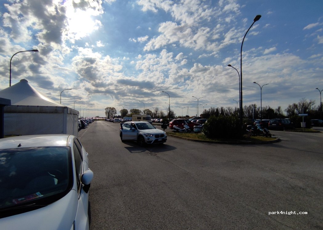 Parking payant très pratique. A deux pas de Treporti (bus et bateau-bus). Sécurisant la journée. Pas idéal pour la nuit... 1h de Venise. 45min de Murano. 15min de Burano. (voir image)