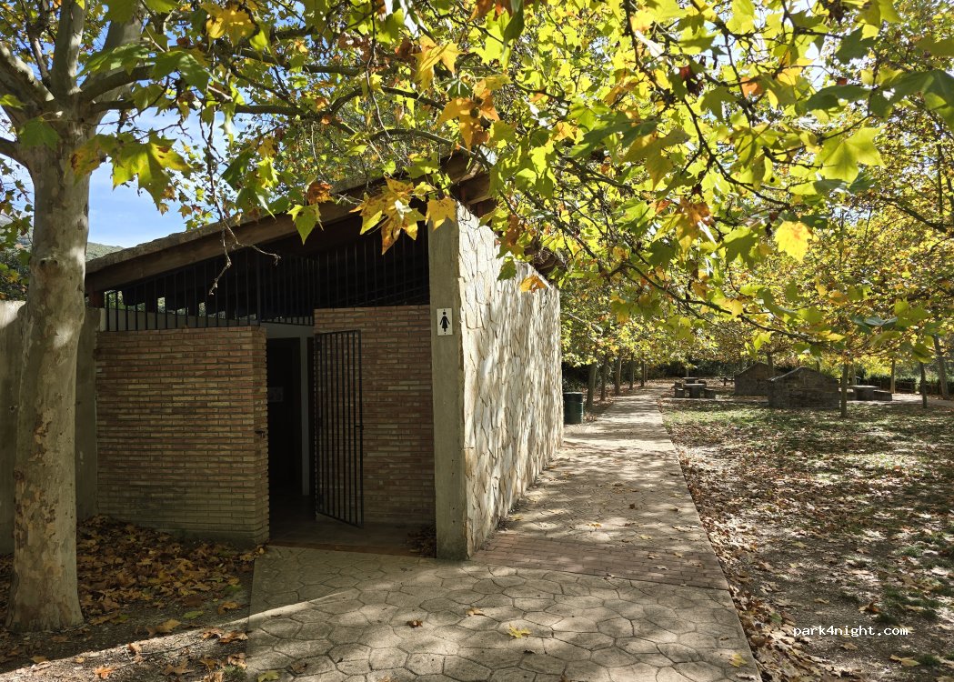 3€ por aparcar, hay baños (con fuente) y merendero. No se puede pernoctar, el parking cierra a las 20:00.