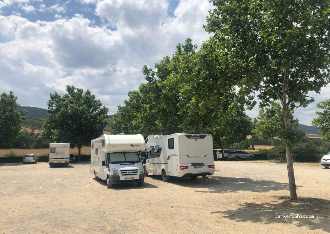 Parking con coste de 5€ para AC, con baños, agua potable y merendero. Buen sitio para parar y ver la preciosa Foz de Lumbier (un paseíto super accesible de 4km que nuestros peques hicieron en bici)