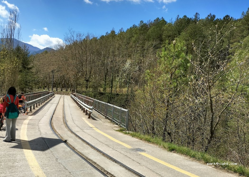 Parkplatz der Artigas-Gärten, ein wunderschöner Ort, den der Architekt Gaudí besuchen sollte. Zufahrt durch die Altstadt, schwierig für ein Wohnmobil, besser nur ein Camper. Die Zufahrt zum Parkplatz erfolgt auf den letzten 100 m über die Gleise der Touristenbahn. Es gibt bessere Orte in der Nähe, um die Nacht zu verbringen.