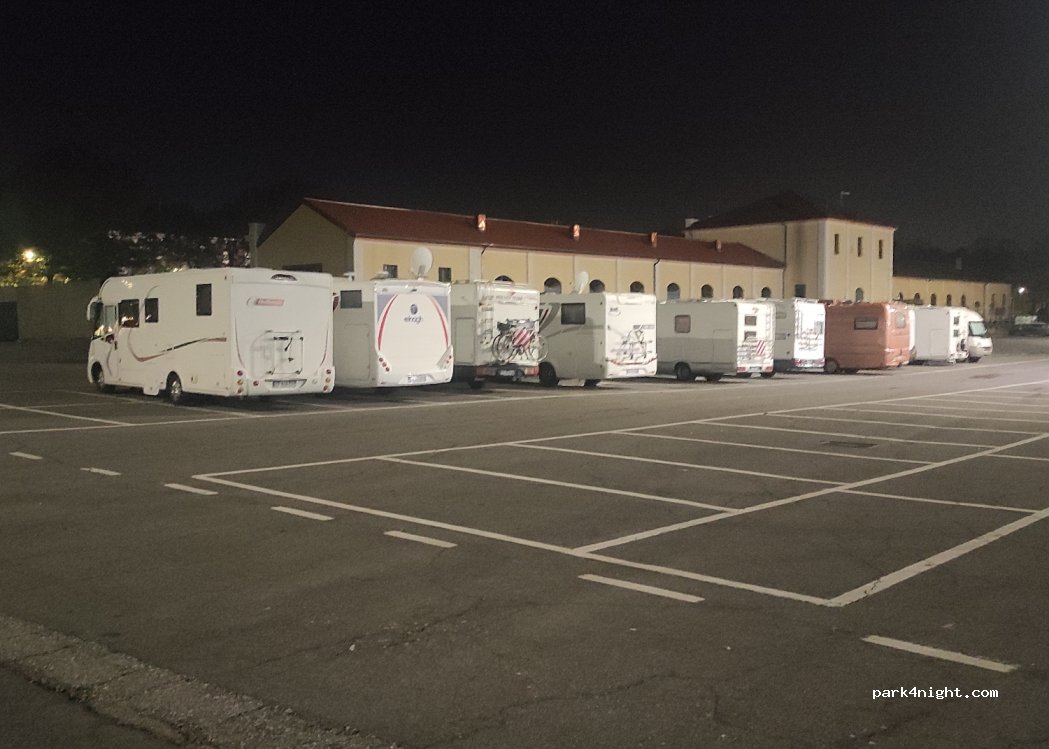 Notte tranquilla, parcheggio senza lampioni presenti altri camper. 15 min dal bel centro città