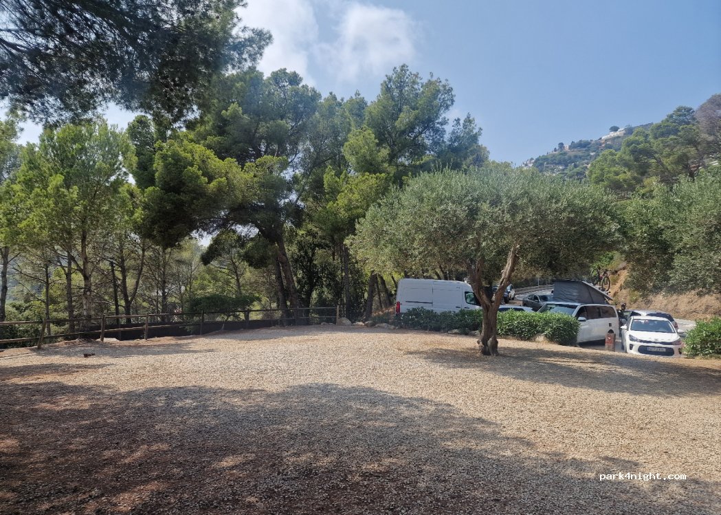 Bel endroit pour s'arrêter pour profiter de la vue sur la Méditerranée et la côte. Je ne sais pas si tu peux passer la nuit. Rien n'indique le contraire mais comme le parking est petit et notre clim de 7m, pour ne pas nous déranger nous sommes allés à un autre endroit