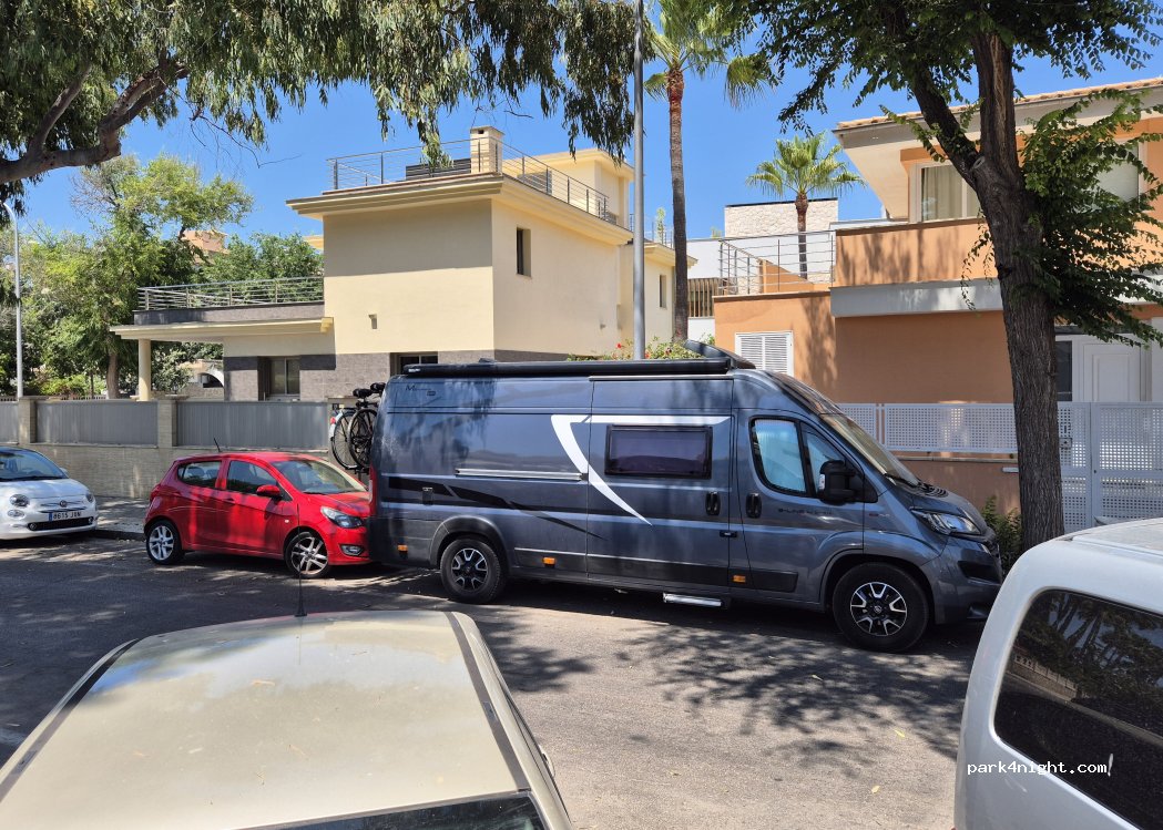 opción muy válida para ir a Palma. se ouede encontrar espacio incluso en primera línea de mar.... pero mejor las calles.transversales o 2da/3ra linea en paralelo al mar. mas tranqui...y MAS sombras importantes en verano. hay muchas furgonetas y AC por la zona. Lidl a 3 calles del mar.