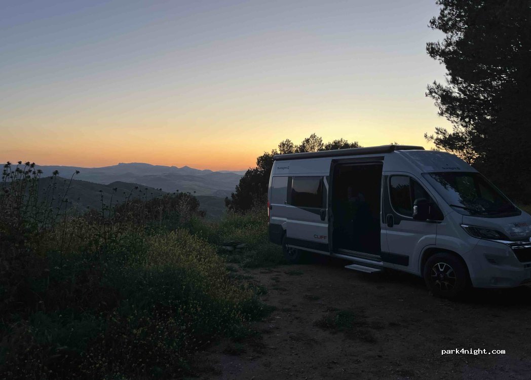 Sehr ruhiger und flacher Platz in Mitten der Natur mit unglaublicher Aussicht auf die andalusische Hügellandschaft. Die ganze Nacht über haben wir kein einziges Auto gehört und gesehen.