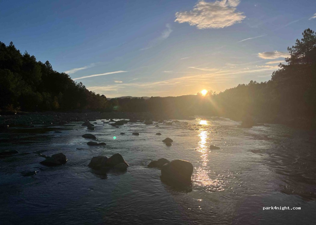 Perfect spot!! Enough shade for when its too warm and enough sun (in the river). Perfect to wash or cool off. Small, but perfectly level. Great easy to reach. Close to the road, but it’s very quiet at night. Perfect place to have a quiet peaceful night in nature.