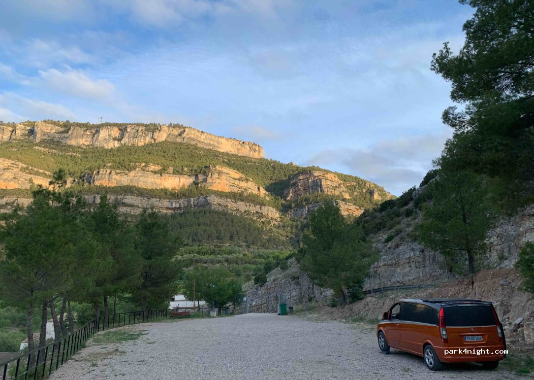 Free parking for motorhomes very close to the town, fenced, with drinking water and litter bins. Beautiful place starting point of hiking and river routes