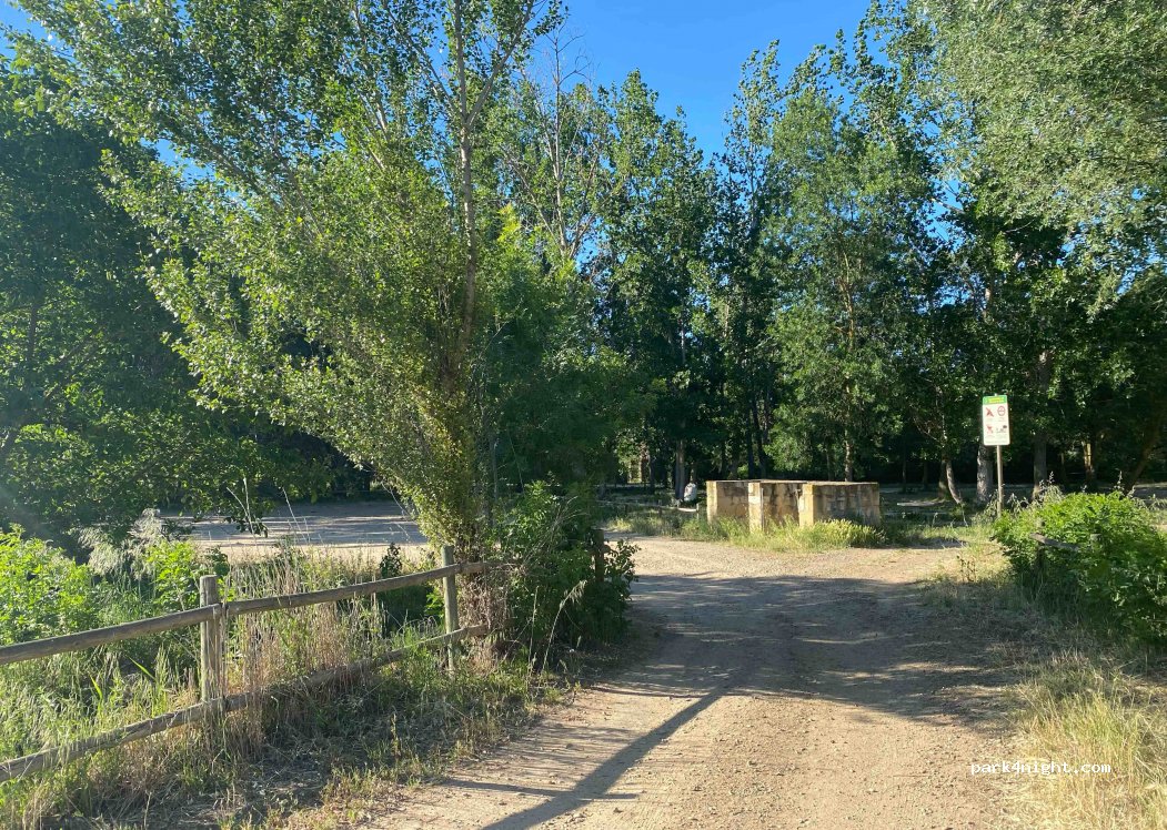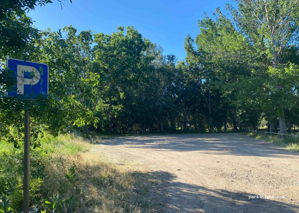 Parking llano cerca del Río Ebro con senderos y rutas tanto para caminar como para ir en bici. Es un parque con mesas para comer y muy tranquilo a las afueras de un pueblo. En menos de 2km está el pueblo con todos los servicios. Ideal para ir con niños y animales.